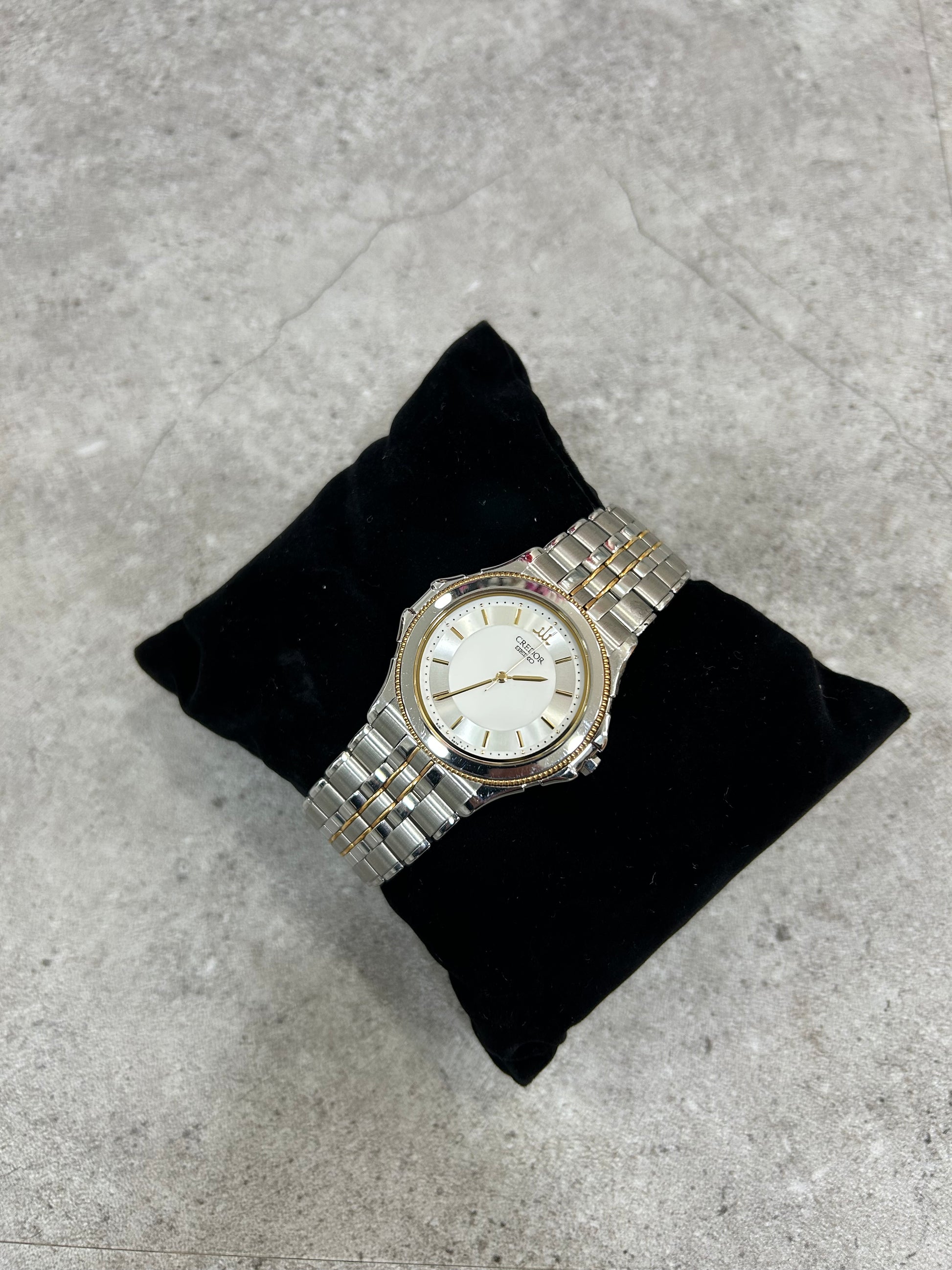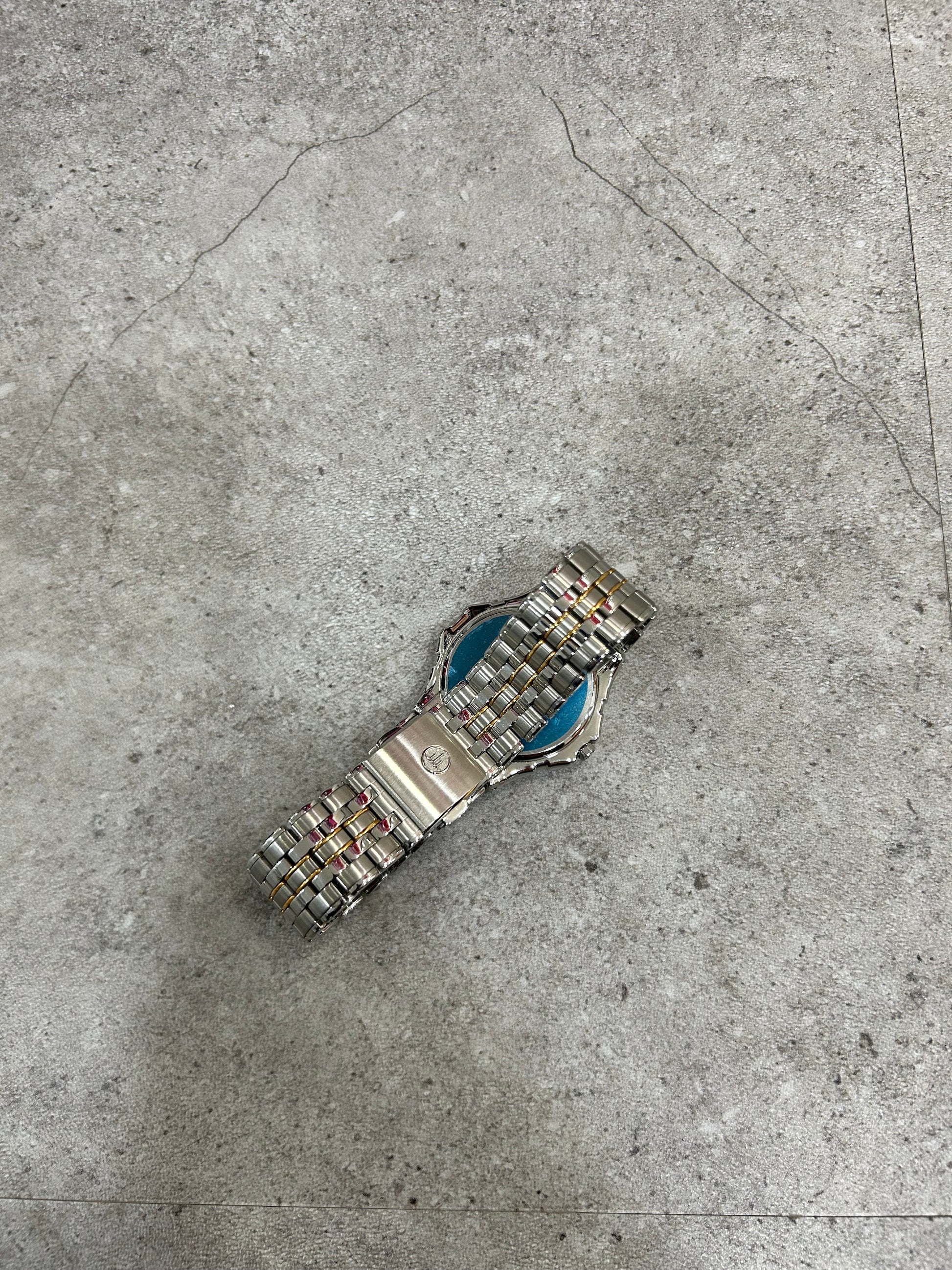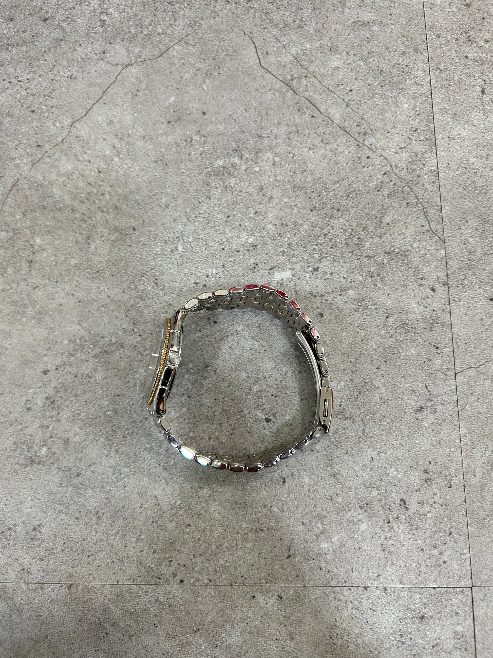 Two tone stainless steel and 18k yellow gold bezel and bracelet